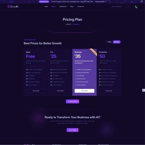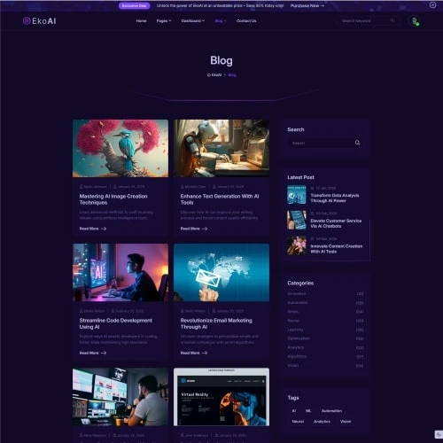 EkoAI یک قالب HTML پیشرفته و کاملاً واکنشگرا است که بهطور اختصاصی برای پلتفرمهای مبتنی بر هوش مصنوعی طراحی شده است. این قالب با جدیدترین فناوریهای HTML ساخته شده و برای ابزارهای تولید متن، کد، ویدیو، تصویر، ایمیل و وبسایت مناسب است.فرقی نمیکند در حال توسعه ابزاری برای تولید محتوا، خودکارسازی یا نوآوری دیجیتال باشید، EkoAI پیشرفتهترین، کارآمدترین و کاربرپسندترین چارچوب را برای تحقق ایدههای شما ارائه میدهد. این قالب بهینهشده برای سئو، قابل سفارشیسازی آسان و دارای کدی تمیز و ساختاریافته است و عملکردی روان را تضمین میکند. همچنین شامل مستندات جامع برای راهاندازی و شخصیسازی آسان است.